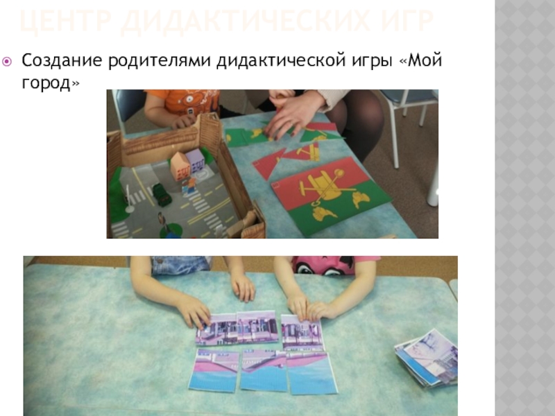 Центр дидактических игрСоздание родителями дидактической игры «Мой город»