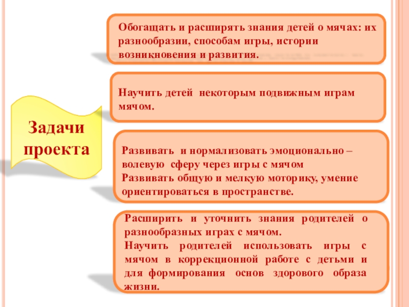 Научить родителей использовать игры с мячом в коррекционной работе с детьми и для формирования основ здорового образа жизни.
