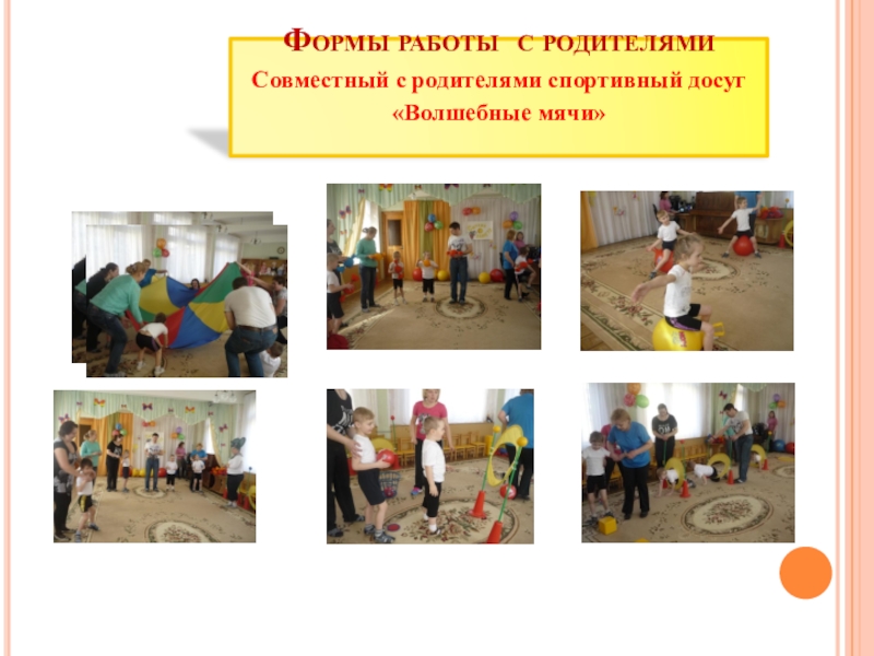 Расширить и уточнить знания родителей о разнообразных играх с мячом.