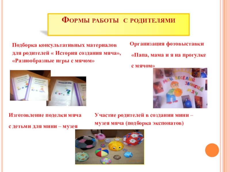 Участие родителей в создании мини – музея мяча (подборка экспонатов)