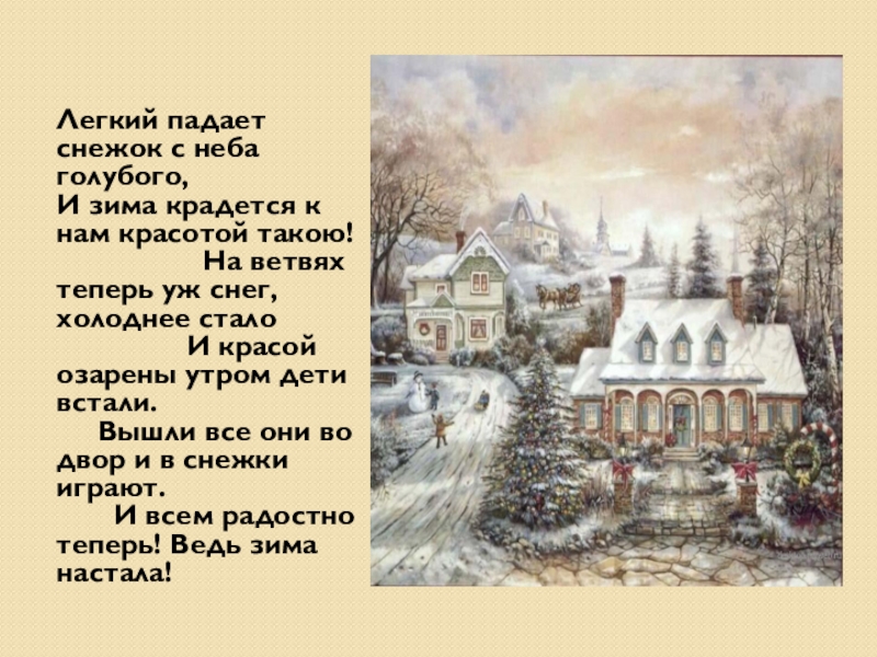 Легкий падает снежок с неба голубого,И зима крадется к нам красотой такою!