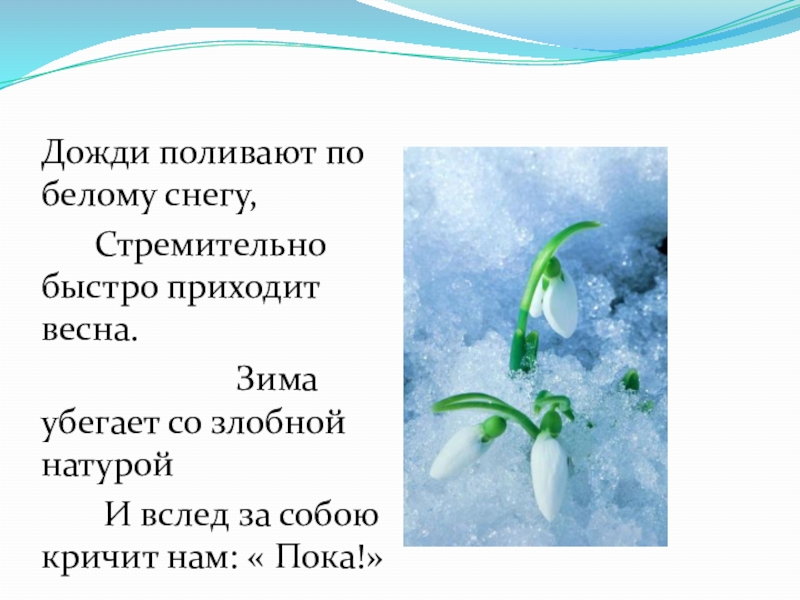 Дожди поливают по белому снегу,   Стремительно быстро приходит весна.