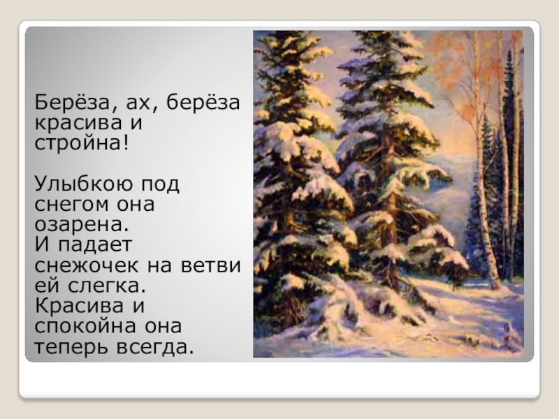 Слайд 12Берёза, ах, берёза красива и стройна!
