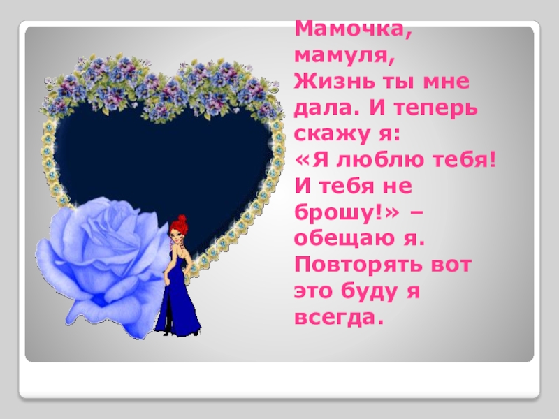 Слайд 14 Мамочка, мамуля, Жизнь ты мне дала. И теперь скажу я: «Я люблю