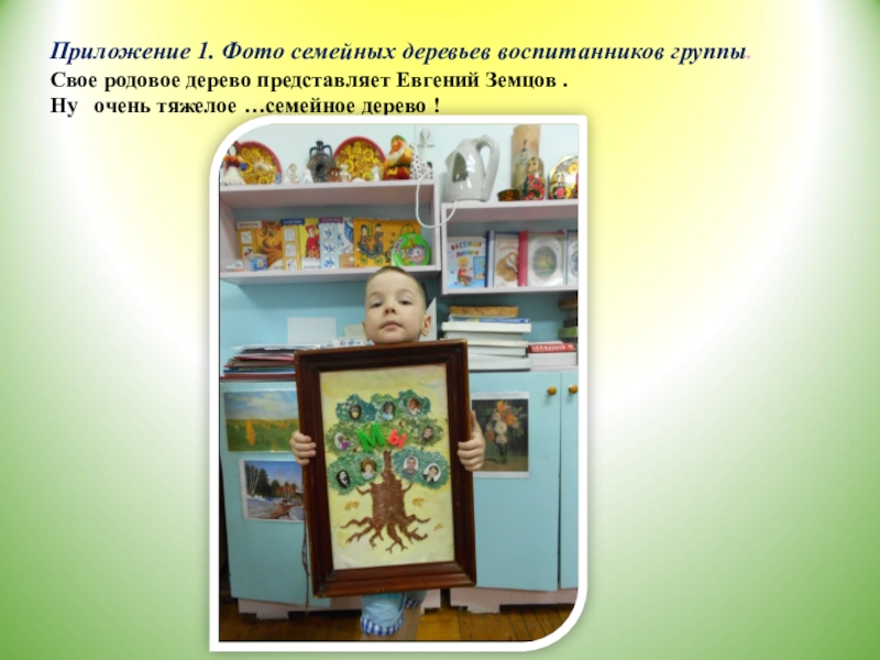 Слайд 20Приложение 1. Фото семейных деревьев воспитанников группы.