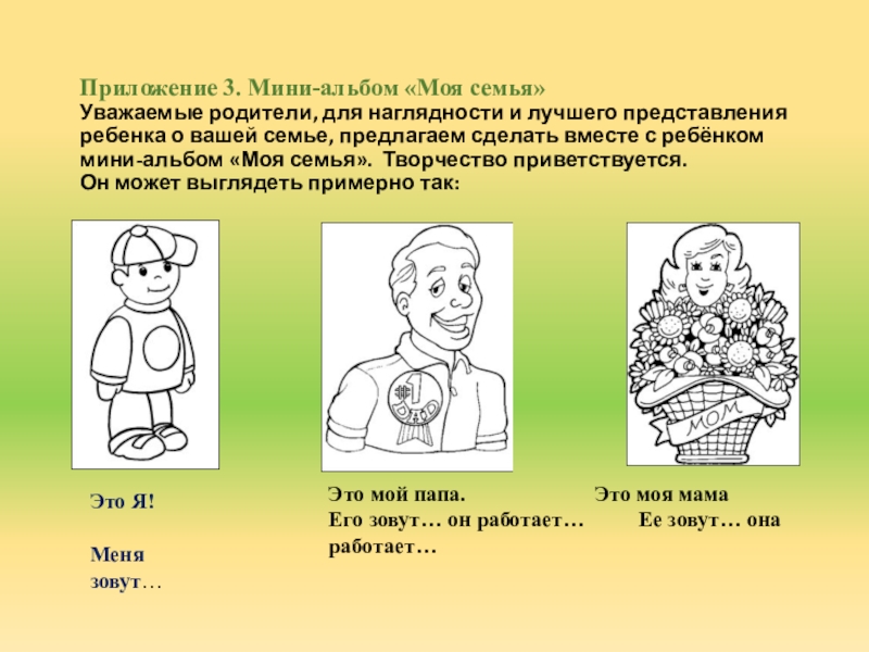 Слайд 26Приложение 3. Мини-альбом «Моя семья»