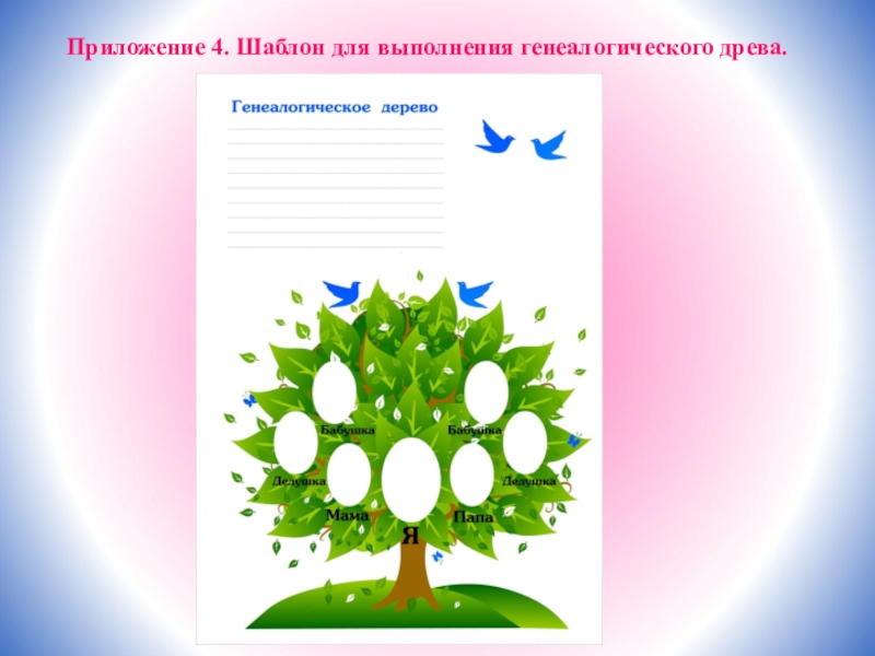 Слайд 28Приложение 4. Шаблон для выполнения генеалогического древа.