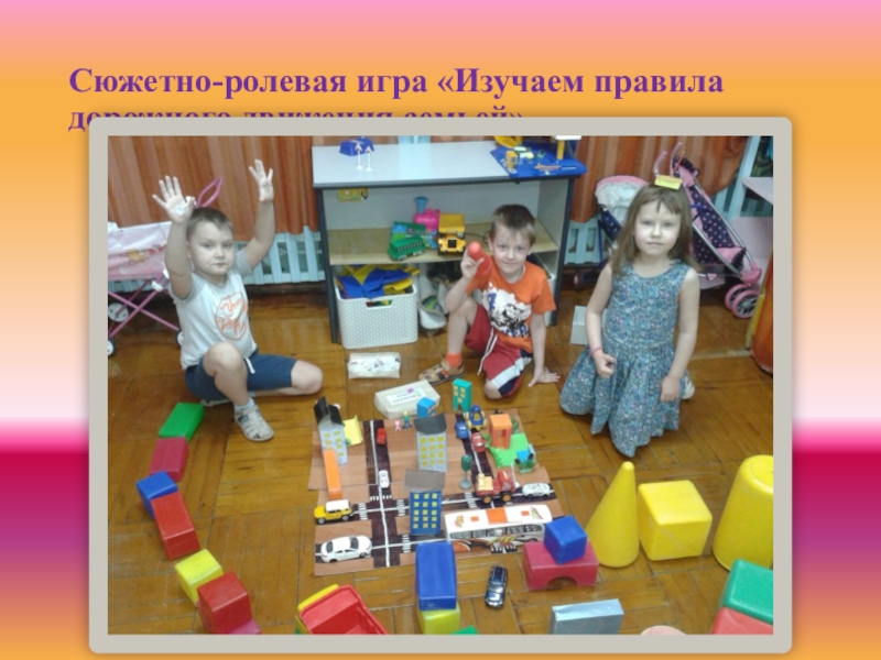 Слайд 32Сюжетно-ролевая игра «Изучаем правила дорожного движения семьей»