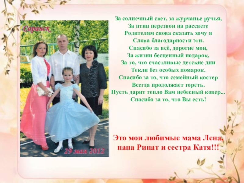 Это мои любимые мама Лена, папа Ринат и сестра Катя!!!