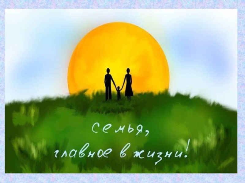 есть. Это ваши мама и папа, сестры и братья, бабушки и дедушки — самые близкие вам люди, которые вас любят, заботятся о вас, делают все, чтобы жизнь ваша была счастливой. Словом, это ваша семья. Вы вырастите, полюбите, женитесь или выйдете замуж, у вас появятся дети — и родится новая семья. Семья — самая необходимая ячейка в обществе. Стоит ли доказывать, что это так? И все же давайте вместе подумаем: чем мы все обязаны семье? Наверное, прежде всего тем, что существуем. Мы появились на свет потому, что наши мама и папа полюбили друг друга и создали семью. Значит, главное предназначение семьи в том, чтобы не иссякал человеческий род.