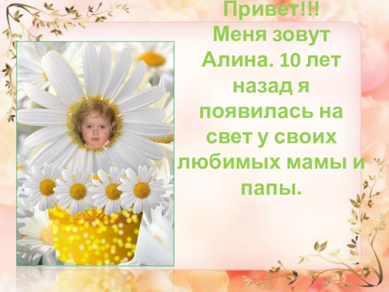 Меня зовут Алина. 10 лет назад я появилась на свет у