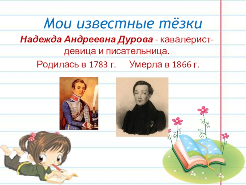 Надежда Андреевна Дурова - кавалерист-девица и писательница.