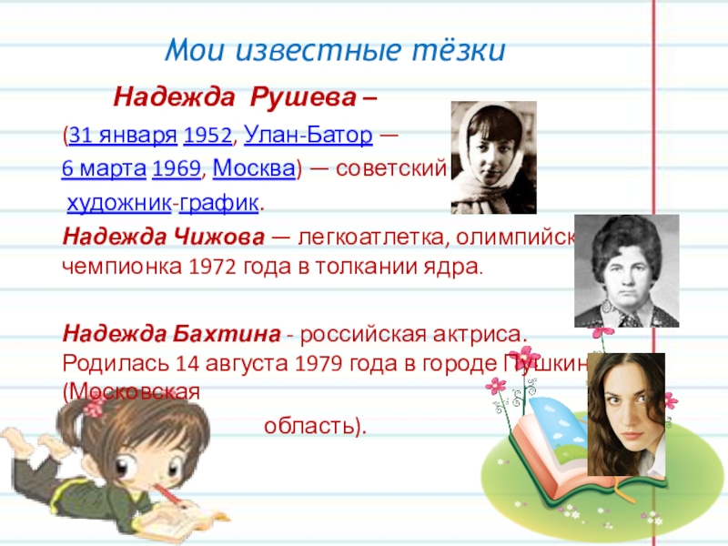 Слайд 19Мои известные тёзки