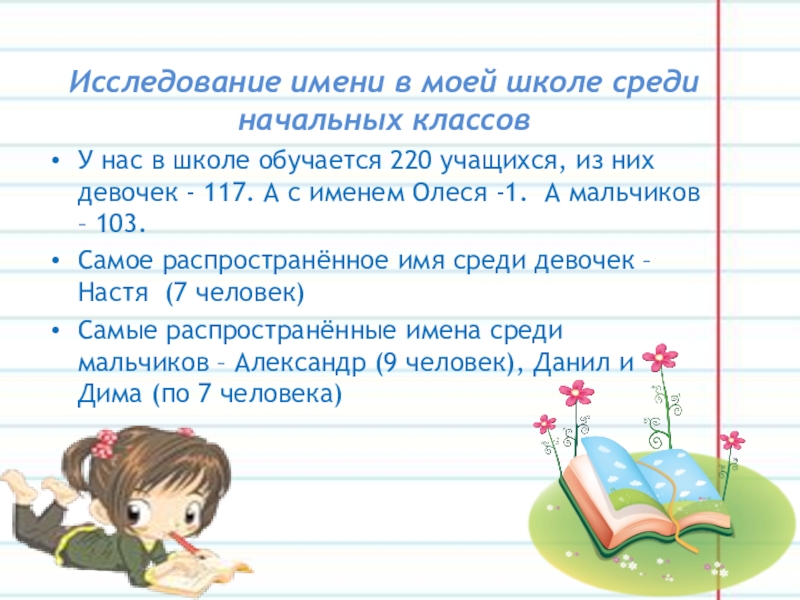 Исследование имени в моей школе среди начальных классов