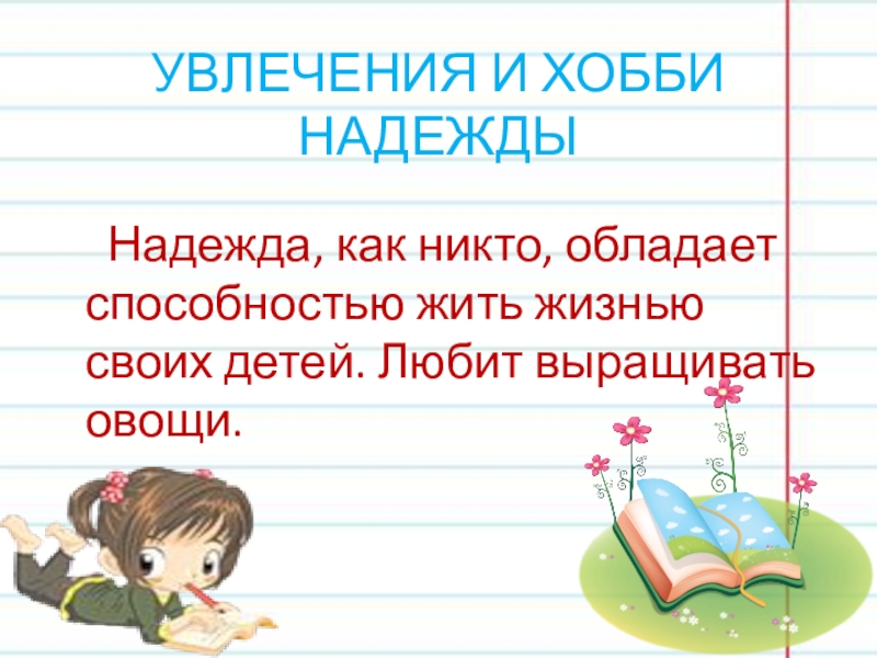 Слайд 15УВЛЕЧЕНИЯ И ХОББИ НАДЕЖДЫ