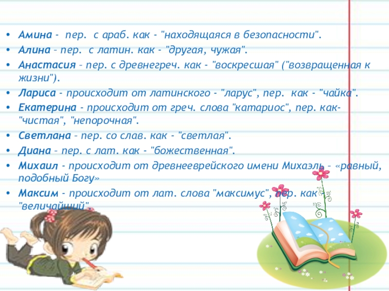Слайд 30Амина - пер. с араб. как - "находящаяся в безопасности".
