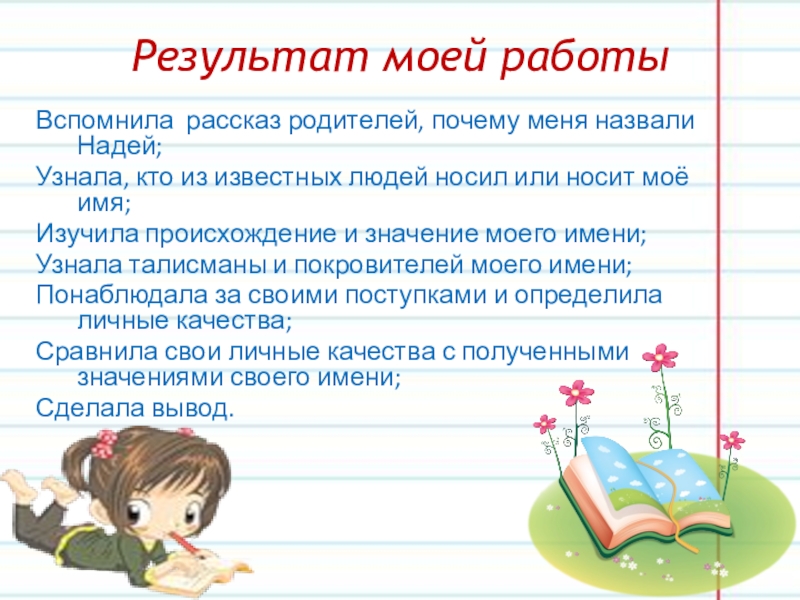 Слайд 24Характеристика имени