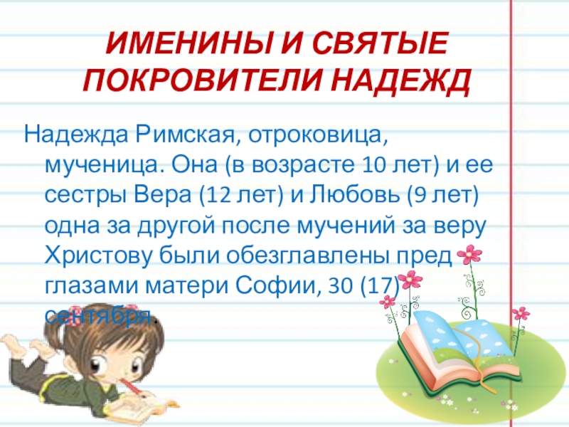 ИМЕНИНЫ И СВЯТЫЕ ПОКРОВИТЕЛИ НАДЕЖД