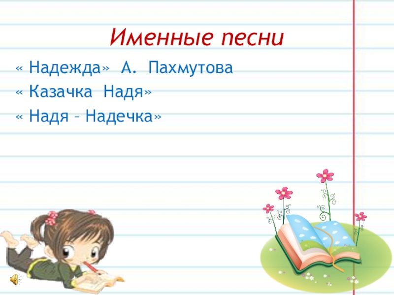 Слайд 29Именные песни