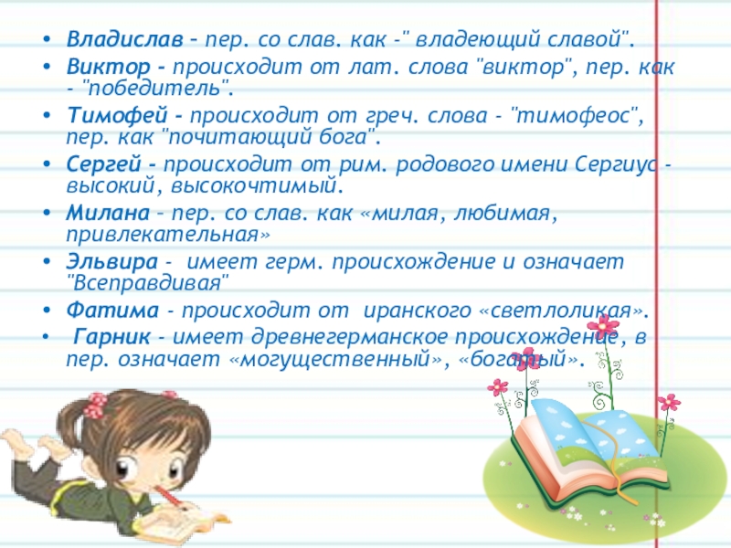 Слайд 31Владислав – пер. со слав. как -" владеющий славой".