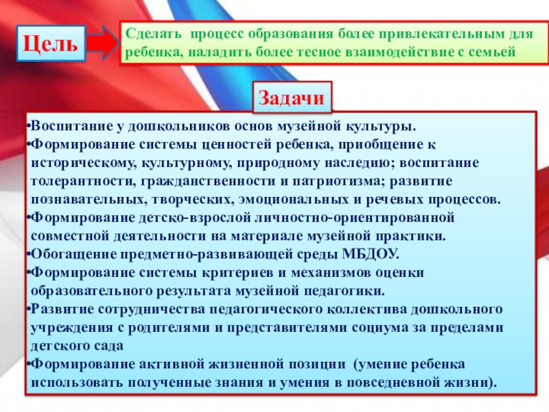 Формирование системы ценностей ребенка, приобщение к историческому, культурному, природному наследию; воспитание толерантности, гражданственности и патриотизма; развитие познавательных, творческих, эмоциональных и речевых процессов.