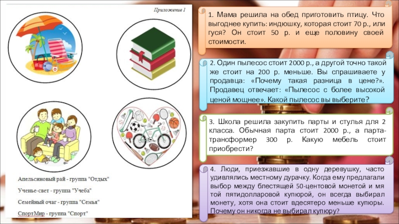 3. Школа решила закупить парты и стулья для 2 класса. Обычная парта стоит 2000 р., а парта-трансформер 300 р. Какую мебель стоит приобрести?