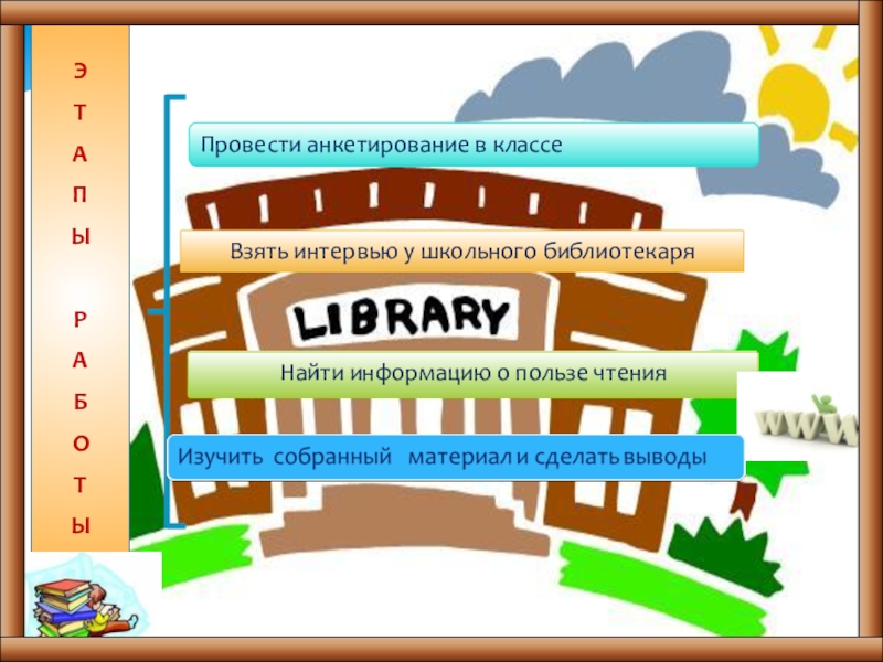 Это сайт презентаций, где можно хранить и обмениваться своими презентациями, докладами, проектами, шаблонами в формате PowerPoint с другими пользователями. Мы помогаем школьникам, студентам, учителям, преподавателям хранить и обмениваться учебными материалами.