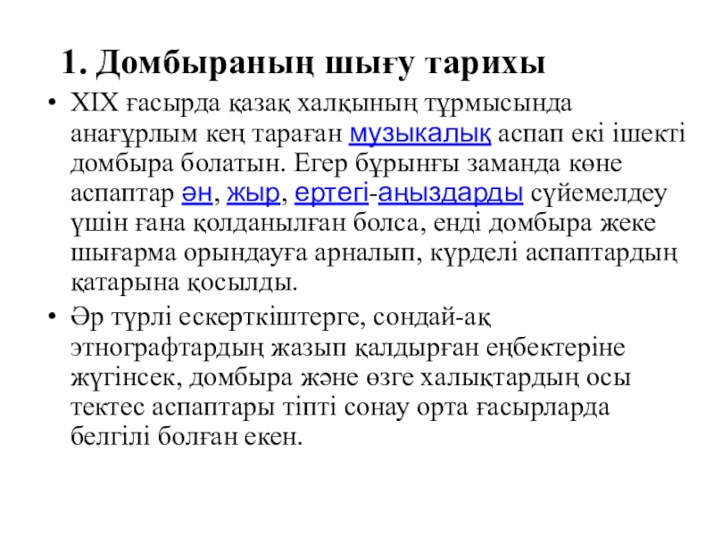 Слайд 6 1. Домбыраның шығу тарихы
