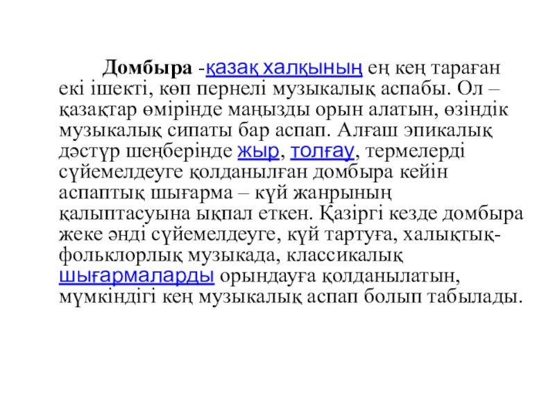 Домбыра -қазақ халқының ең кең