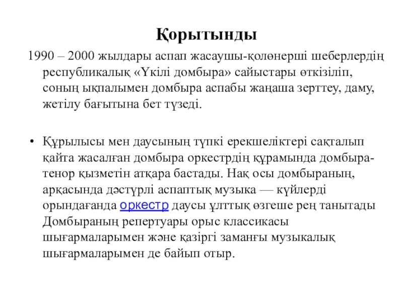 өткізіліп, соның ықпалымен домбыра аспабы жаңаша зерттеу, даму, жетілу бағытына бет түзеді.