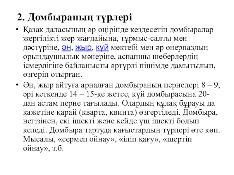 Слайд 9 2. Домбыраның түрлері
