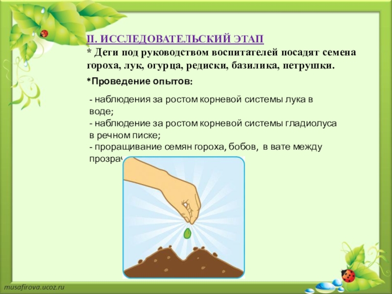 - проращивание семян гороха, бобов, в вате между прозрачными плоскостями.