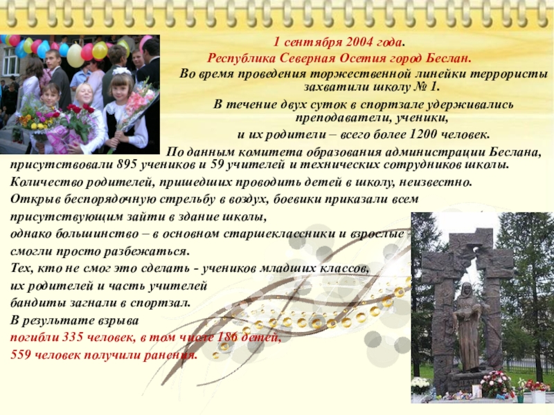 присутствовали 895 учеников и 59 учителей и технических сотрудников школы.