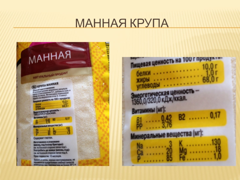 Манная крупа очень калорийный продукт. Поэтому её рекомендуется давать на завтрак перед контрольной работой и спортивными соревнованиями.