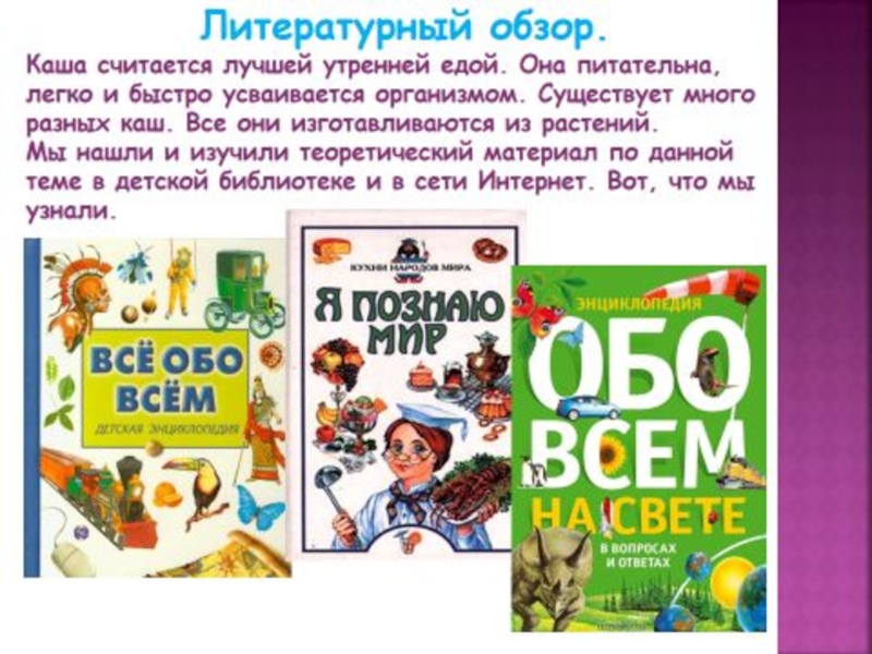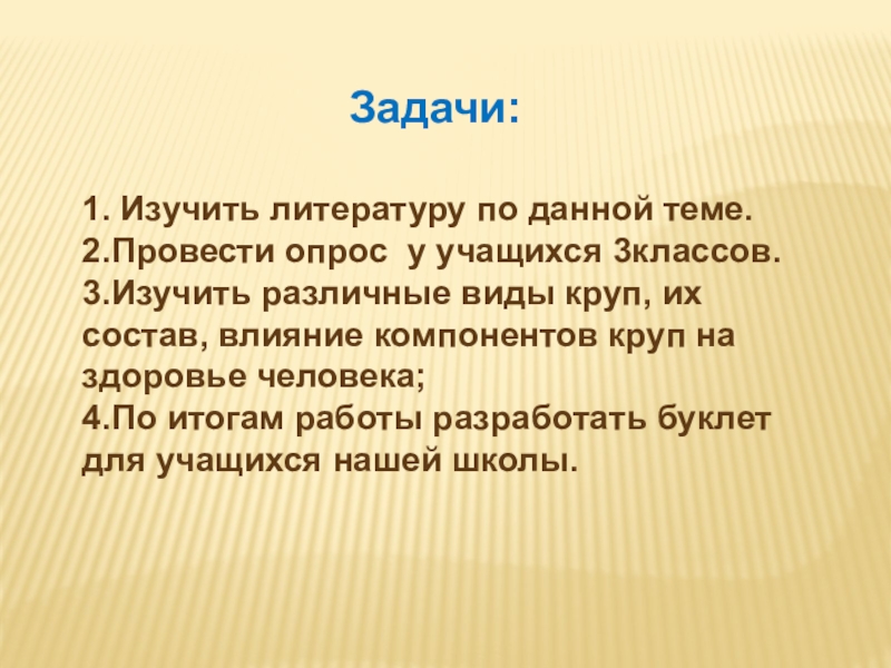 виды круп, их состав, влияние компонентов круп на здоровье человека;