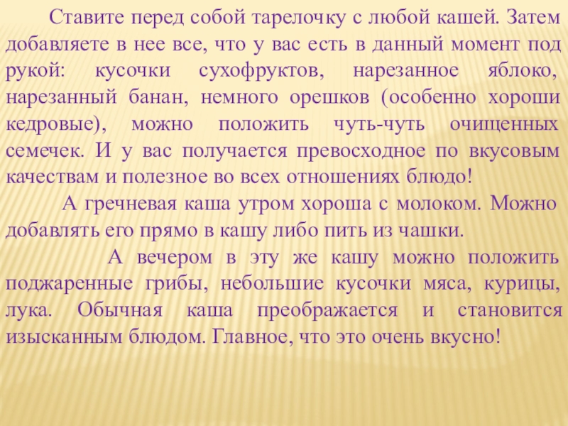 Слайд 23 Ставите перед собой тарелочку с любой кашей.
