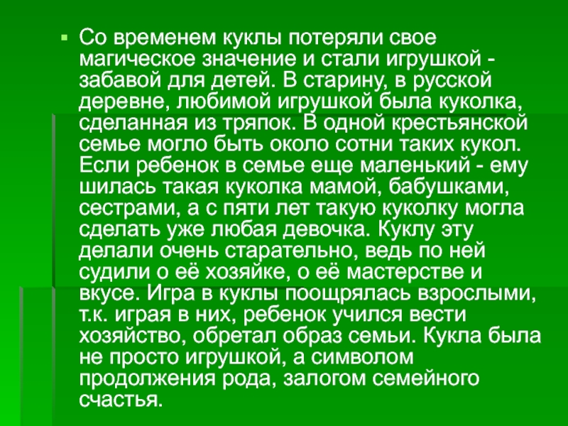 Со временем куклы потеряли свое магическое значение и стали игрушкой -