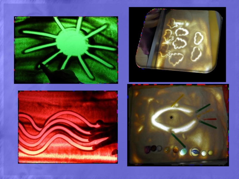 хорошо просушенный и просеянный песок насыпаем на световой планшет и рисуем пальчиком картинку.
