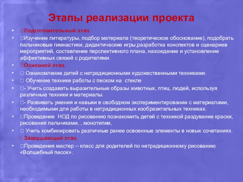 9. На последующих занятиях можно осваивать новый способ рисования песком, путём отсечения лишнего.