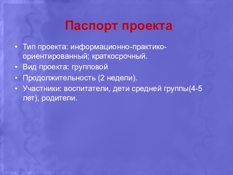 Тип проекта: информационно-практико-ориентированный; краткосрочный.