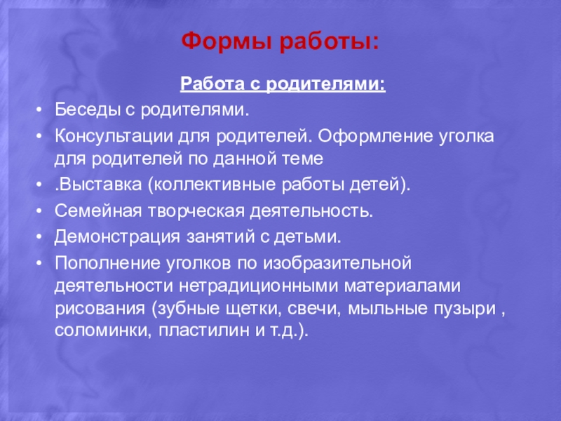 Организация ежемесячных выставок продукции детской деятельности для родителей;