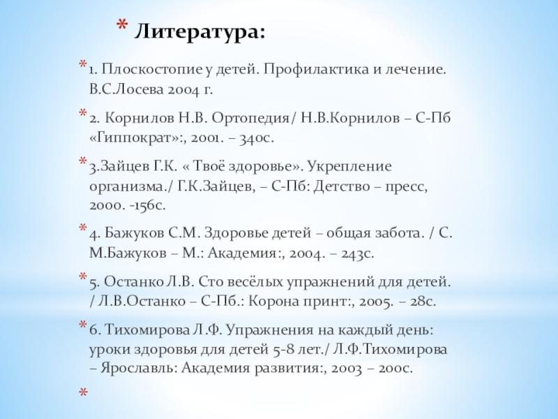 1. Плоскостопие у детей. Профилактика и лечение. В.С.Лосева 2004 г.