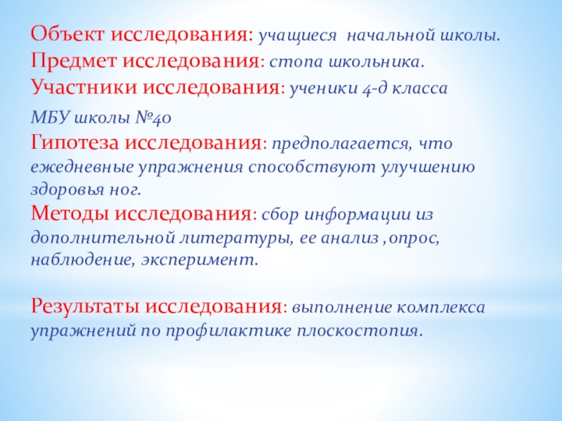 Гипотеза исследования: предполагается, что ежедневные упражнения способствуют улучшению здоровья ног.