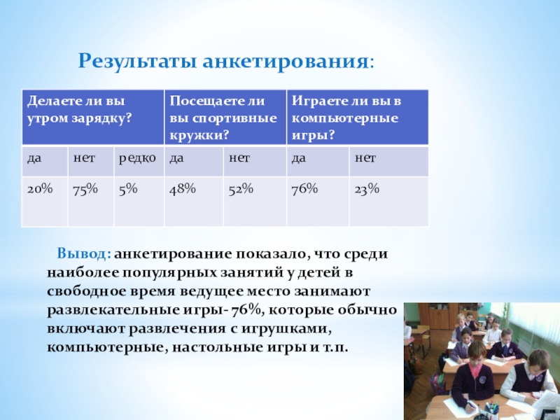 Слайд 14 Вывод: анкетирование показало, что среди наиболее популярных