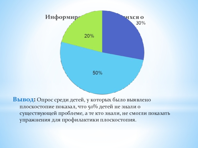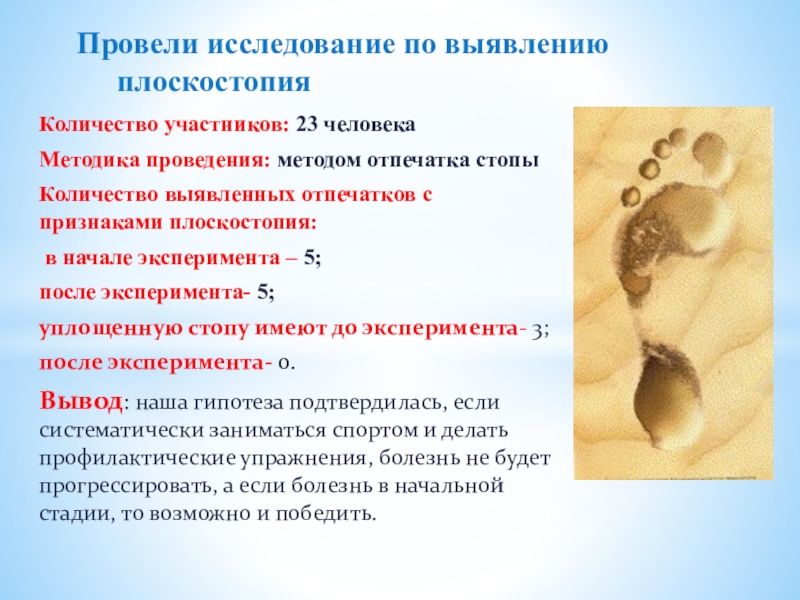 Слайд 16Вывод: Опрос среди детей, у которых было выявлено плоскостопие показал, что