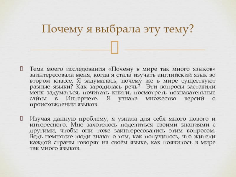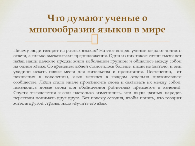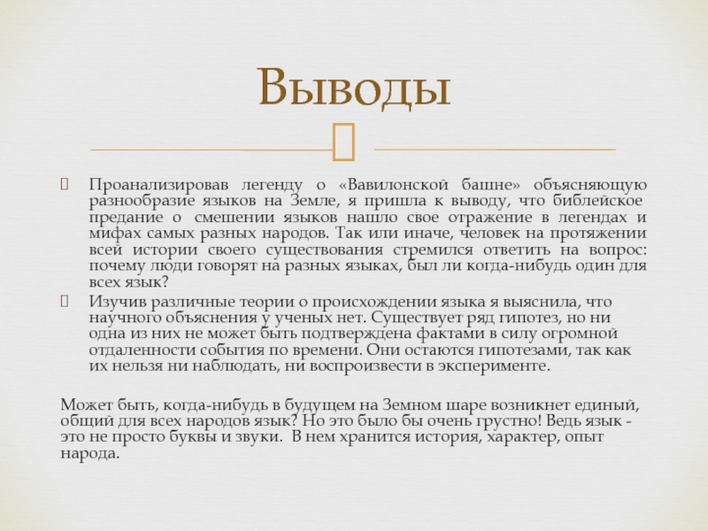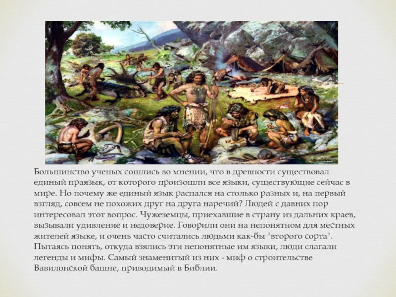 – знакомство с различными легендами, научными версиями о причинах возникновения большого количества языков в мире.