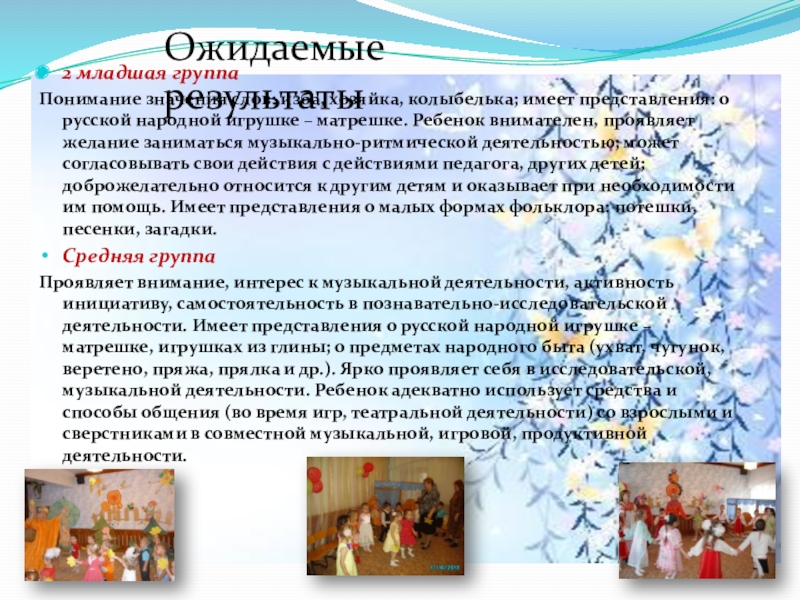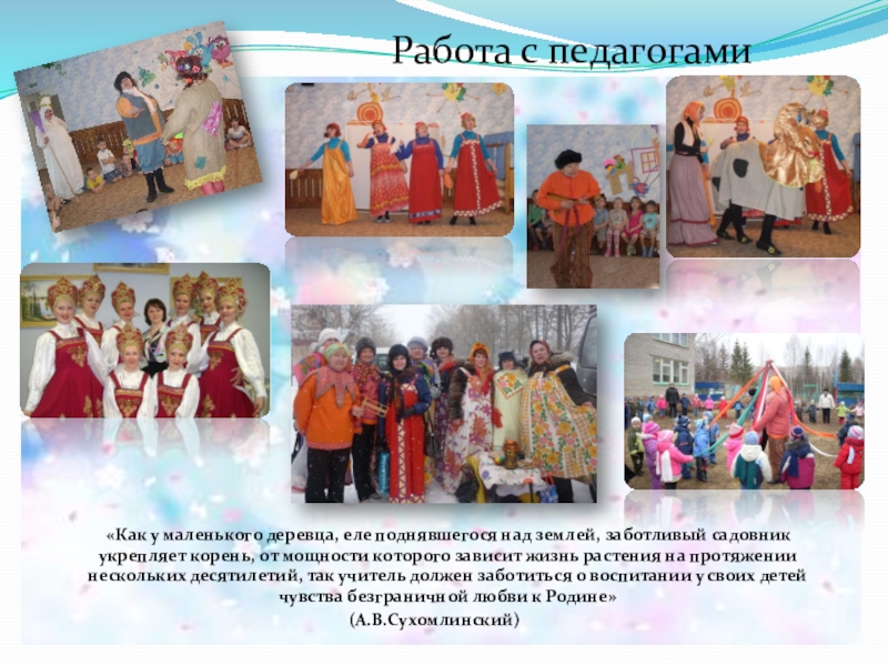 Владение педагогами особенными художественными средствами: умение петь, танцевать, играть на народных музыкальных инструментах