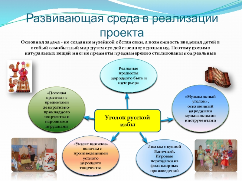 «Музыкальный уголок», оснащенный народными музыкальными инструментами