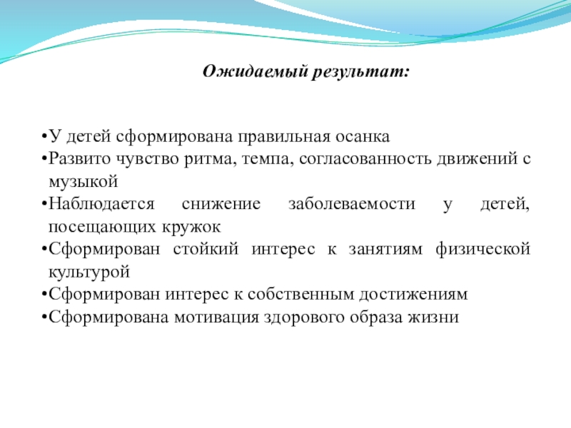 - содействовать развитию чувства ритма, памяти, внимания, умения согласовывать движения с музыкой.