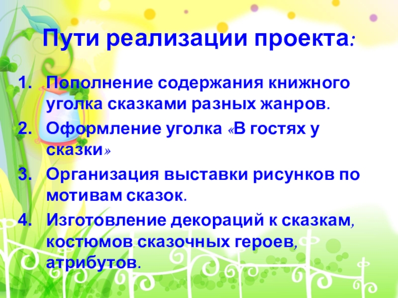 Изготовление декораций к сказкам, костюмов сказочных героев, атрибутов.